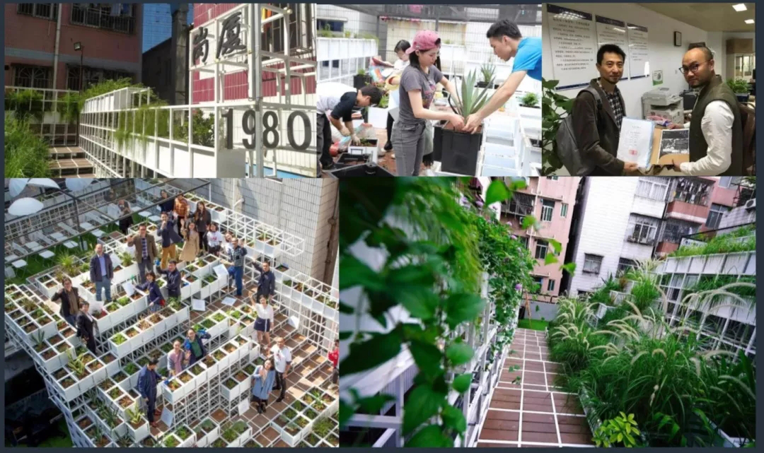 來自本地智慧的聯(lián)合創(chuàng)始人謝克非先生介紹說,作為城中村改造的實踐者,我們在做就是如何在這些矛盾中獲得共生。或者說,如何把所有矛盾點結(jié)合起來,讓城中村可以可持續(xù)地發(fā)展。所以在2018年3月聯(lián)合大自然保護協(xié)會(TNC)、桃花源生態(tài)保護基金會、深圳市城市規(guī)劃設(shè)計研究院、聯(lián)合公設(shè)發(fā)布了綠色天臺:愚公計劃2.0——崗廈1980海綿城市綠色屋頂示范項目。這個綠植天臺不僅是能夠美化環(huán)境,截存雨水、循環(huán)灌溉綠植等,更重要的是我們希望它作為一個平臺,把NGO的理念注入城中村,讓大家把對城中村的注意力從貧富懸殊、拆遷轉(zhuǎn)移到綠色環(huán)保,促進可持續(xù)的發(fā)展。這里不僅是個景觀的平臺,更是內(nèi)容發(fā)動機,能夠持續(xù)地產(chǎn)生更多的內(nèi)容。通過藝術(shù)、教育、公益等不同板塊的活動,以內(nèi)容的方式,把文化、環(huán)保、可持續(xù)發(fā)展等的信號不斷在這個點上發(fā)散出去,讓大家重新認(rèn)識城中村,從持續(xù)性的內(nèi)容信息實現(xiàn)社區(qū)營造,服務(wù)不同階層的人,讓更多人覺得環(huán)保、教育這件事情其實是非常有趣的,不生硬的,大家會主動繼續(xù)攜手服務(wù)社區(qū)。