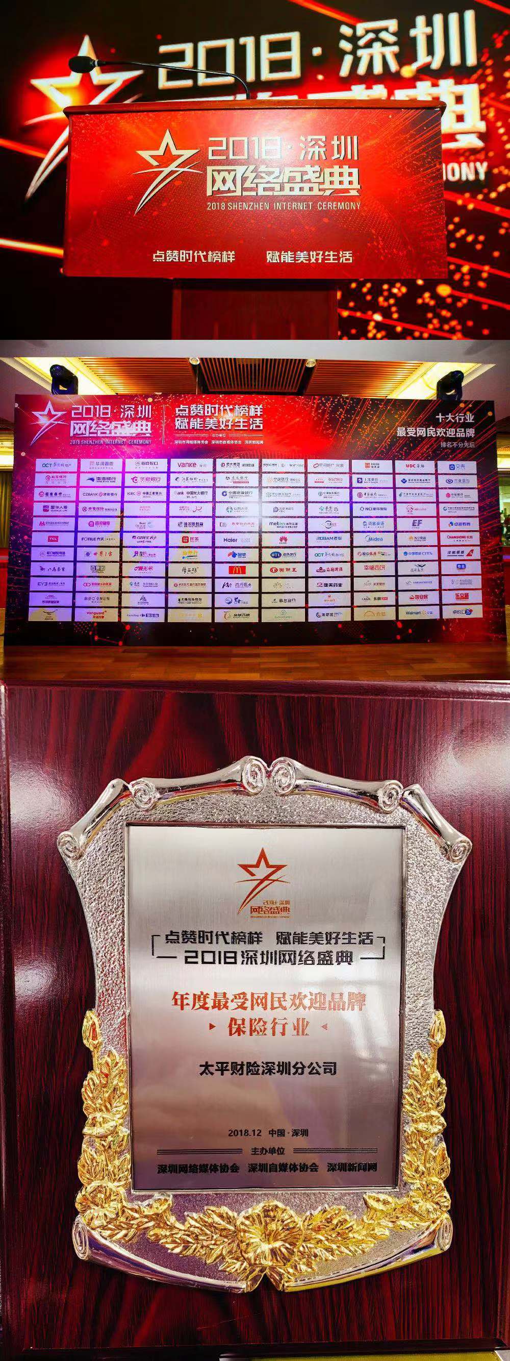 為弘揚(yáng)主流價值,唱響深圳好聲音,點(diǎn)贊深圳網(wǎng)絡(luò)正能量,賦能美好生活愿景,12月26日,“2018深圳網(wǎng)絡(luò)盛典”在市民中心成功舉辦,太平財險深圳分公司受邀參加了盛典。