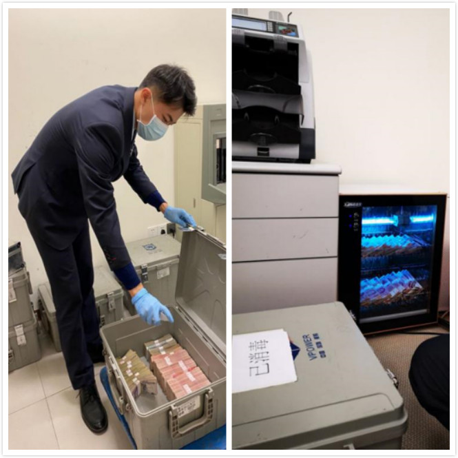 為嚴防交叉感染,該行堅持對現(xiàn)金業(yè)務進行收支分離,優(yōu)先安排各券別原封新券對外支付,收入現(xiàn)金單獨存放,凈化現(xiàn)金倉儲環(huán)境。在自助設(shè)備方面,該行關(guān)閉所有現(xiàn)金自助設(shè)備循環(huán)功能,最大限度的保障人民群眾的身體健康,讓廣大人民群眾存得“安心”,用得“放心”。