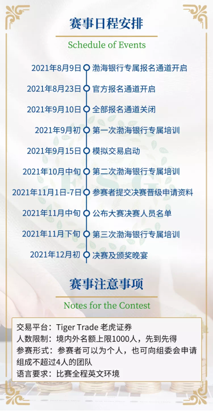 活動(dòng)冠名方——渤海銀行希冀以本賽事的舉辦為契機(jī),通過緊張激勵(lì)而又活潑有趣的模擬投資組合競賽形式、寓教于樂,樹立并培養(yǎng)青年一代對(duì)于財(cái)富增長與傳承的正確理念,引導(dǎo)年輕人理解并實(shí)踐綠色投資,促進(jìn)青年一代“財(cái)商”理念與能力的全面提升。