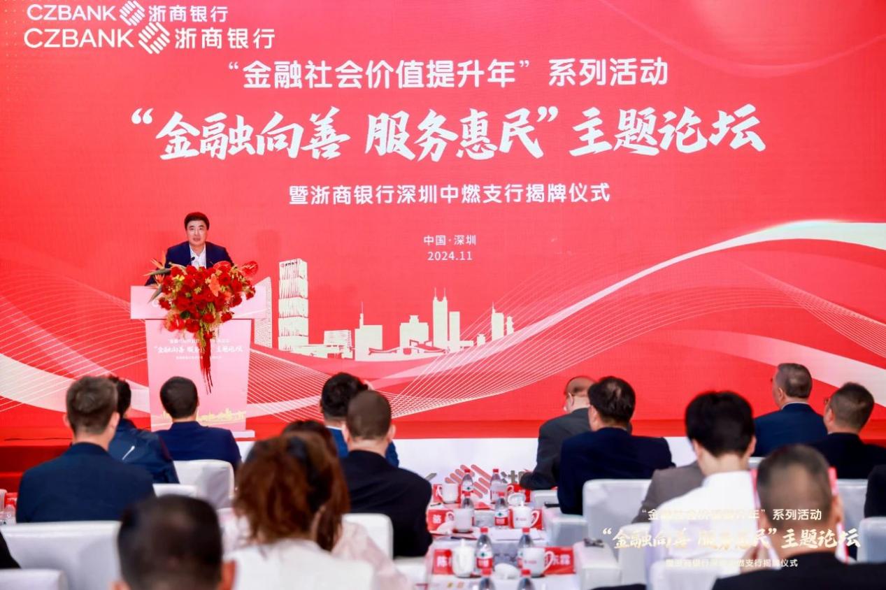 深圳新聞網(wǎng)2024年11月6日訊(記者 朱琳 通訊員 劉璇)為深入貫徹黨的二十屆三中全會和中央金融工作會議精神,11月4日,“金融向善 服務(wù)惠民”主題論壇暨浙商銀行深圳中燃支行揭牌儀式在中國燃?xì)獯髲B舉行。本次活動也是浙商銀行“金融社會價值提升年”系列活動之一。國務(wù)院發(fā)展研究中心原黨組成員、副主任余斌,中國上市公司協(xié)會會長宋志平,浙商銀行黨委書記、董事長陸建強,中國燃?xì)饪毓捎邢薰径戮种飨瘎⒚鬏x等嘉賓出席活動。