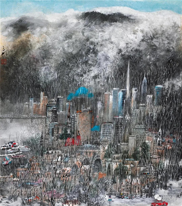 城市山水畫是新時(shí)期以來伴隨著中國(guó)城市化浪潮而在美術(shù)界提出的一個(gè)新概念,旨在用中國(guó)畫或水墨畫來反映現(xiàn)代人賴以生存的城市及城市生活,以此探索中國(guó)畫另一種方式的現(xiàn)代性轉(zhuǎn)型。城市山水畫并不是城市加山水這樣簡(jiǎn)單。從藝術(shù)語言來說,山水筆墨的縱情寫意是完全排斥鋼筋水泥筑成的各種擠壓在一起的城市建筑的,中國(guó)畫的寫意筆線擅長(zhǎng)勾廓,而拙于造型體量的塑造。因而,僅就中國(guó)畫表現(xiàn)現(xiàn)代城市建筑這一能力而言,傳統(tǒng)筆墨必須加以改良或新造才能適應(yīng)現(xiàn)代城市建筑及都市景觀的表現(xiàn)需求。從藝術(shù)境界來說,城市山水畫展現(xiàn)的應(yīng)當(dāng)是現(xiàn)代人的生活方式,表達(dá)的意蘊(yùn)也應(yīng)當(dāng)是自然與人的和諧精神;但城市樓宇林立,玻璃和鋼的大廈越建越高,高科技的交通與通信工具迫使城市的個(gè)人空間越來越小,而城市生活節(jié)奏則越來越快,這意味著城市生存與城市生活方式對(duì)于人與自然和諧關(guān)系的背離。因而,城市山水畫無論是表現(xiàn)現(xiàn)代化城市生活與自然的諧調(diào)關(guān)系,還是僅僅用筆墨或彩墨表達(dá)現(xiàn)代化城市人文景觀,都是值得中國(guó)畫學(xué)探討的一個(gè)重要學(xué)術(shù)課題。