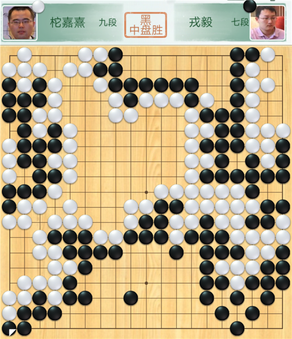 不過,接下來喜訊再次傳來:戎毅快棋執(zhí)黑贏了世界冠軍柁嘉熹。深圳龍華隊至此奠定勝局,至少是2:2主將勝,拿兩分。這一局,中盤時白棋在中央尋求作戰(zhàn),黑棋正面應(yīng)對則局面有利。實戰(zhàn)黑棋避戰(zhàn)搶占右邊,中央白棋先動手后白棋領(lǐng)先。但在之后官子爭奪戰(zhàn)中,白棋失誤頻頻,黑棋遂幸運(yùn)小勝。
