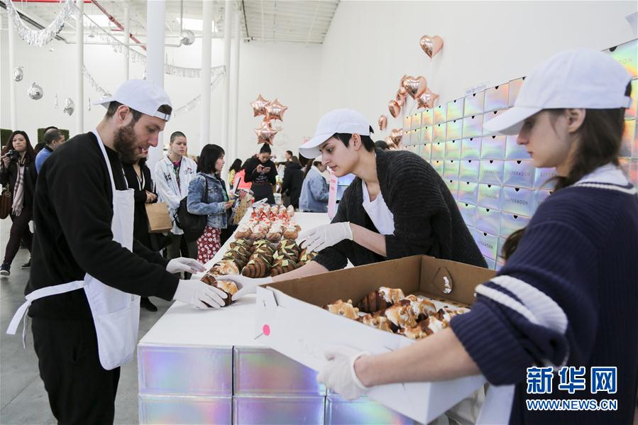 3月18日,在美國(guó)紐約,工作人員在甜品節(jié)上準(zhǔn)備出售熱門甜品。一年一度的紐約“甜品目標(biāo)”甜品節(jié)于17日開幕,20多家甜品展商在現(xiàn)場(chǎng)展示造型精美、創(chuàng)意十足的美味甜品,吸引超過(guò)5000名甜品愛好者報(bào)名參加。甜品節(jié)還精心設(shè)置了美拍專區(qū),方便人們?cè)谙碛锰鹌返耐瑫r(shí)在社交平臺(tái)上分享甜蜜時(shí)刻。新華社記者王迎攝