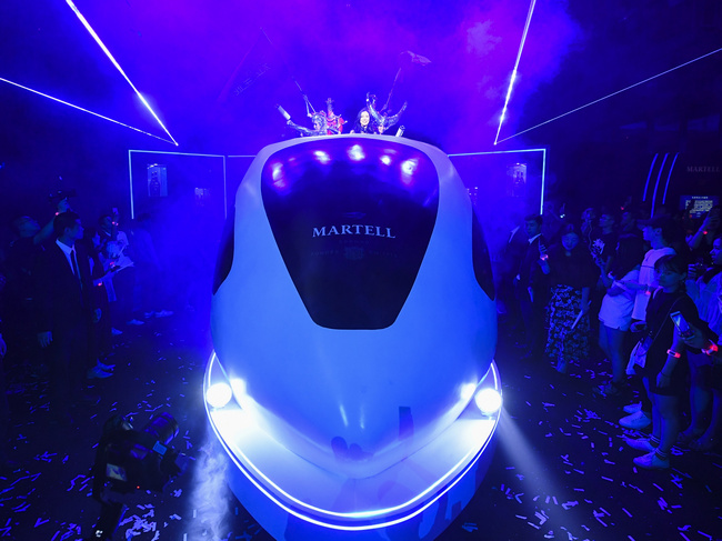 派對(duì)的熱度逐漸攀升,正當(dāng)全場(chǎng)沉浸于馬爹利所營(yíng)造的新奇派對(duì)氛圍中時(shí),舞臺(tái)燈光倏然又陷入黑暗,所有人的目光被吸引到吧臺(tái)。聚光燈下,又一列馬爹利名士派對(duì)列車的獨(dú)特子彈車頭穿越光影迷霧,載著舞者與電子音樂(lè)先鋒DJ耀眼登場(chǎng)。舞者們揮舞著派對(duì)旗幟,引領(lǐng)嘉賓跟隨音浪一起盡情搖擺,雙重的電音震撼更是讓派對(duì)現(xiàn)場(chǎng)燃至沸騰。舞動(dòng)的間隙,嘉賓們還可為自己選上一杯專屬飲品,開(kāi)啟味蕾上的全新享受。愈發(fā)強(qiáng)勁的音浪和灼熱的現(xiàn)場(chǎng)氣溫將這個(gè)打破邊界的派對(duì)之夜推向了高潮。