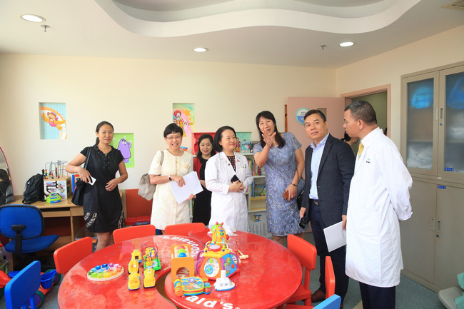 活動嘉賓參觀設(shè)在上海兒童醫(yī)學(xué)中心內(nèi)病區(qū)內(nèi)的麥當(dāng)勞叔叔愛心活動室