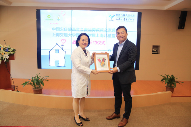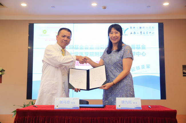 中國宋慶齡基金會唐九紅部長(右),國家兒童醫(yī)學(xué)中心(上海兒童醫(yī)學(xué)中心)張馬忠副院長(左)簽署雙方戰(zhàn)略合作協(xié)議