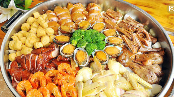 盆菜是中國香港特色菜肴之一,一盆菜里薈萃了百菜百味,中國香港人喜歡逢年過節(jié)時吃盆菜,賦予盆菜喜慶團(tuán)聚的意義。