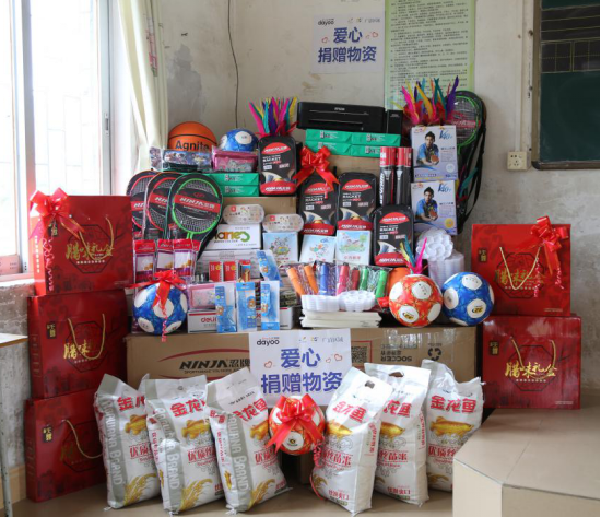 在捐贈儀式上,洋洋公益團隊為橫槎小學的師生們送上籃球、足球、羽毛球、作業(yè)本、鉛筆、橡皮檫、文具盒、打印機等文體用品和教學用具,以及大米、臘腸等生活物資。橫槎小學謝校長代表學校對愛心團隊一行表示感謝,并將錦旗和學生用心勾勒的美術作品回贈給碧桂園集團廣清區(qū)域、廣州日報大洋網(wǎng)等愛心代表。