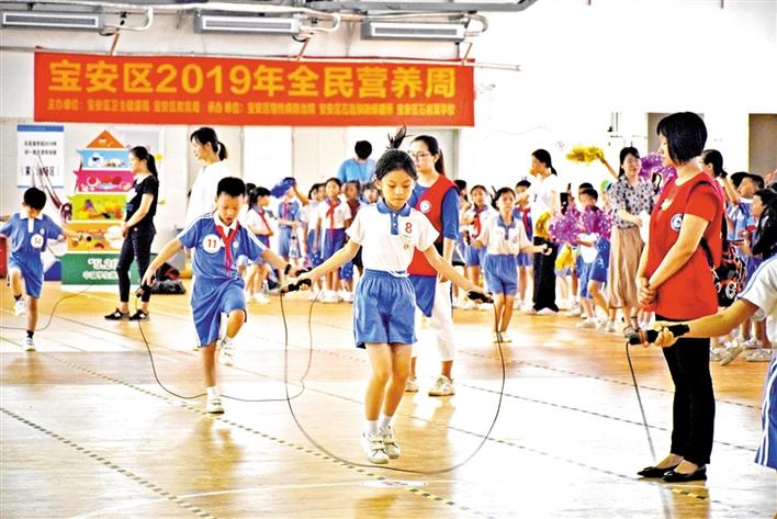 寶安日?qǐng)?bào)5月21日訊 你每天運(yùn)動(dòng)夠60分鐘了嗎?每天都有吃蔬菜水果嗎?如今,已有越來(lái)越多的人重視營(yíng)養(yǎng)、運(yùn)動(dòng)與人體健康的關(guān)系,每年的5月20日是中國(guó)學(xué)生營(yíng)養(yǎng)日,今年的主題是“營(yíng)養(yǎng)+運(yùn)動(dòng),攜手護(hù)視力”。5月20日下午,寶安區(qū)2019年全民營(yíng)養(yǎng)周暨“5·20”中國(guó)學(xué)生營(yíng)養(yǎng)日在石巖湖學(xué)校舉行。