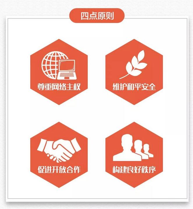 習近平曾指出,互聯(lián)網(wǎng)發(fā)展是無國界、無邊界的,利用好、發(fā)展好、治理好互聯(lián)網(wǎng)必須深化網(wǎng)絡空間國際合作,攜手構建網(wǎng)絡空間命運共同體。要理直氣壯維護我國網(wǎng)絡空間主權,明確宣示我們的主張。為此,習近平提出“四點原則”和“五點主張”:
