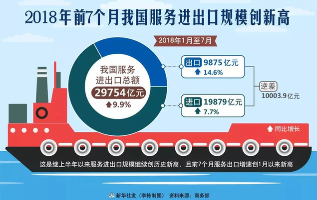 ① 商務(wù)部發(fā)布數(shù)據(jù)顯示,前7個月我國服務(wù)進出口規(guī)模創(chuàng)新高。