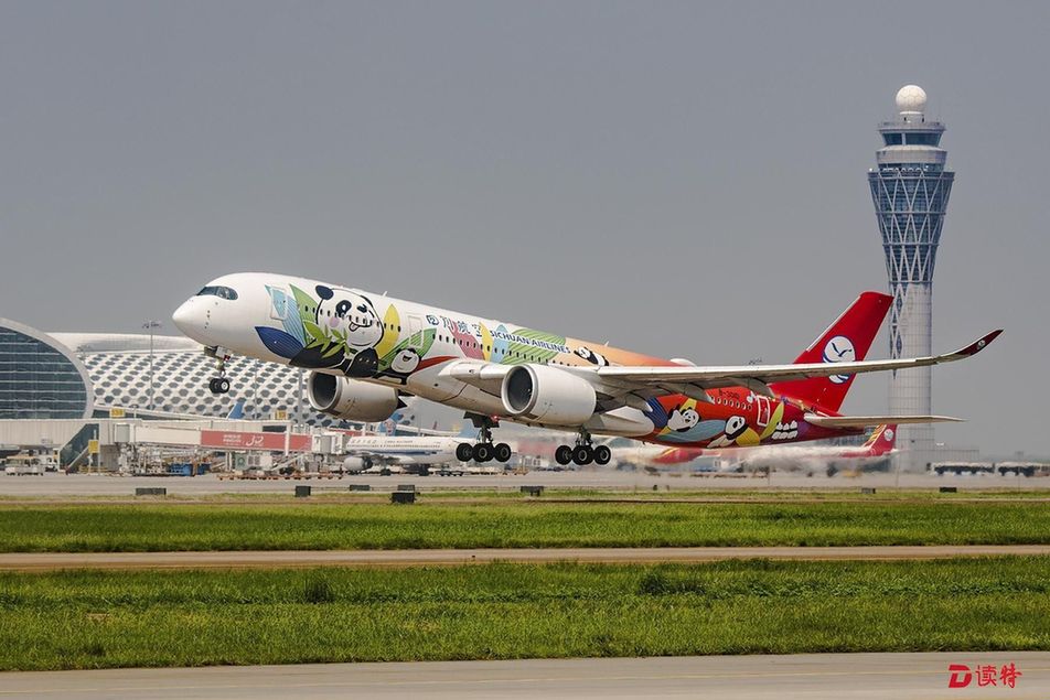 原標(biāo)題:川航A350飛機(jī)首秀深圳 “熊貓彩繪”驚艷深圳機(jī)場(chǎng)