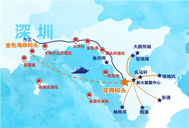 “鹽田金色海岸碼頭-南澳雙擁碼頭”航線示意圖(圖片由深圳航運(yùn)集團(tuán)提供)