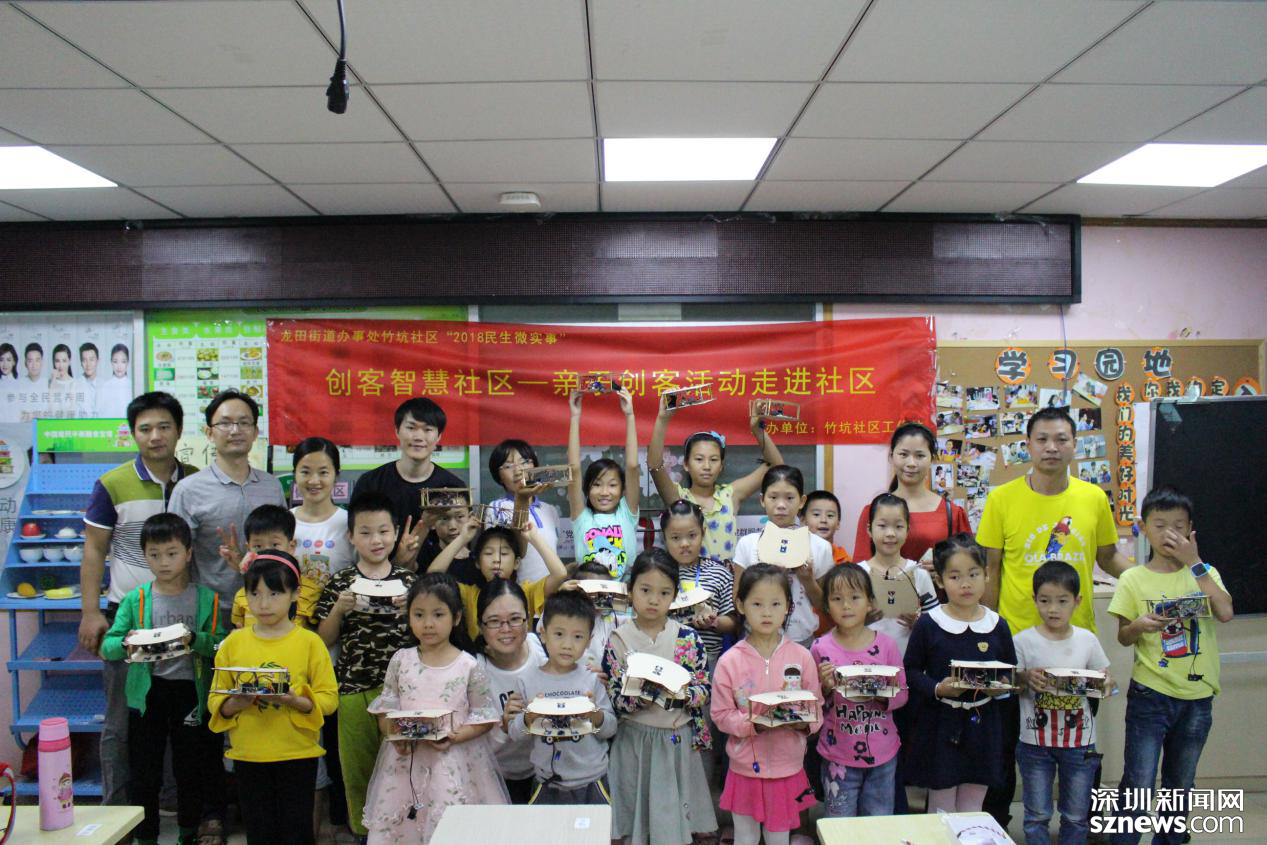 深圳新聞網(wǎng)訊 (記者 曹園芳 通訊員 徐曉霞)為培養(yǎng)轄區(qū)青少年創(chuàng)造能力和創(chuàng)新思維,讓他們養(yǎng)成數(shù)字化學(xué)習(xí)習(xí)慣,促進(jìn)孩子的全面發(fā)展,2018年10月20日至28日,在坪山區(qū)龍?zhí)锝值乐窨由鐓^(qū)的領(lǐng)導(dǎo)支持下,“創(chuàng)客智慧社區(qū)”親子創(chuàng)客活動(dòng)在新坪山人互助服務(wù)中心順利開展,該活動(dòng)作為2018竹坑社區(qū)民生微實(shí)事項(xiàng)目活動(dòng),旨在通過形式多樣的,將數(shù)學(xué)、幾何、物理等多門學(xué)科橫向關(guān)聯(lián),讓孩子與家長(zhǎng)一起動(dòng)手動(dòng)腦編程,在科技活動(dòng)中領(lǐng)略創(chuàng)新和實(shí)踐的快樂。本次活動(dòng)共服務(wù)居民超過100人次,共同完成20余件獨(dú)特的創(chuàng)新作品。