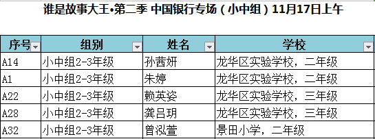 “誰(shuí)是故事大王 ·第二季”深圳市復(fù)賽晉級(jí)名單