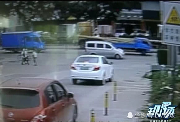 隨后裝竹子的前車開到斑馬線前突然剎車,緊跟其后的另一輛貨車剎車不及直接撞上,竹子直接插穿了后車的駕駛室,隨即車頭碎片橫飛,駕駛室嚴(yán)重變形。