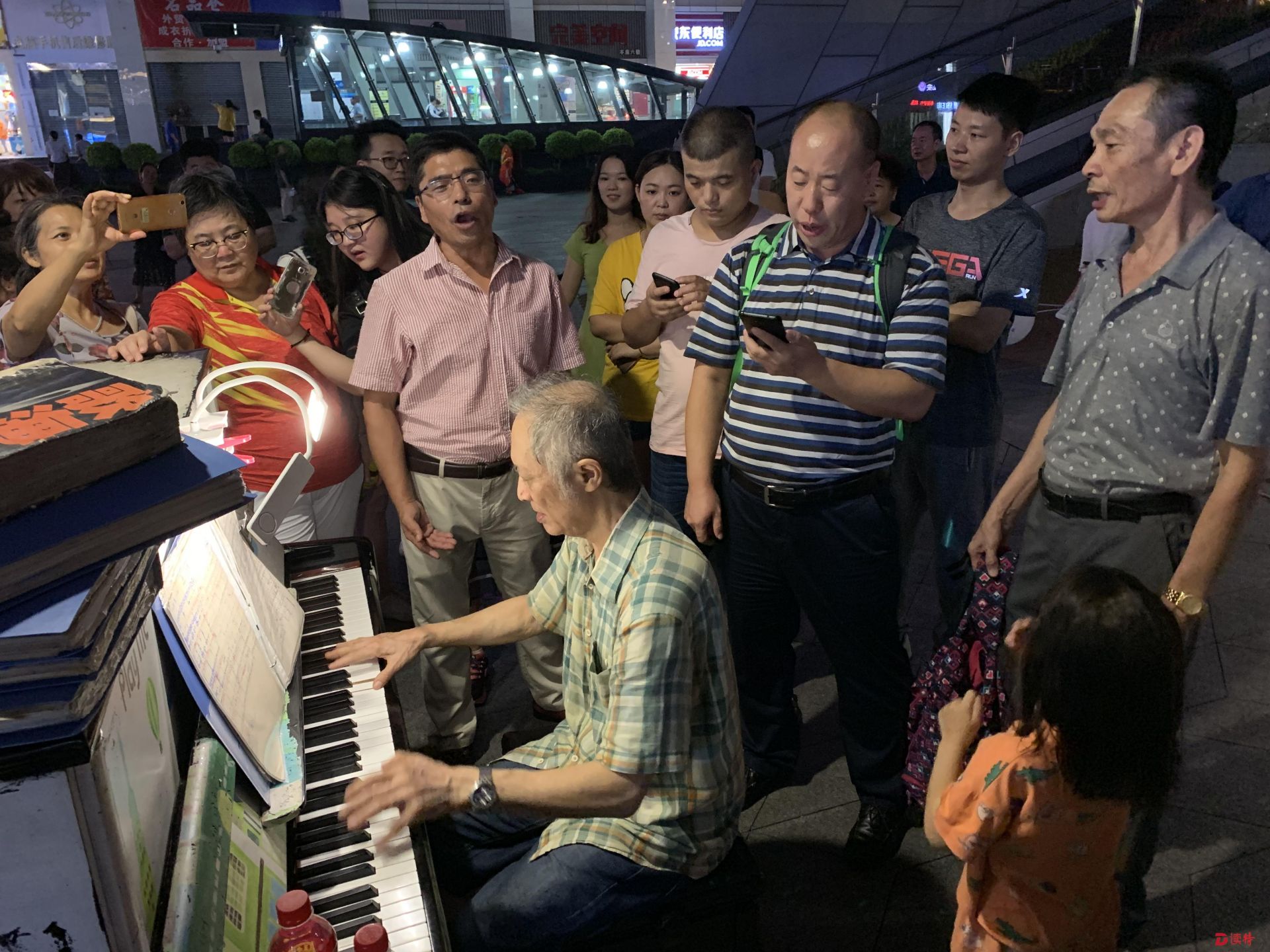 深圳特區(qū)報(bào)2019年9月23日訊 每天晚上9點(diǎn),一場(chǎng)小型的“鋼琴音樂會(huì)”準(zhǔn)時(shí)在華強(qiáng)北商業(yè)街上演?!耙魳窌?huì)”的聽眾默契地圍在鋼琴邊上,一首接一首地給坐在琴凳上的老人點(diǎn)歌。