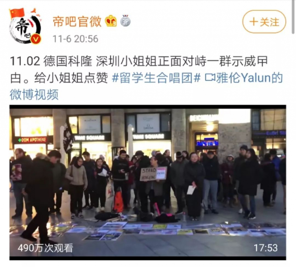 深圳晚報(bào)2019年11月8日訊 11月2日晚,在德國(guó)科隆街頭,一位來(lái)自中國(guó)內(nèi)地的女孩,用中、英、德三種語(yǔ)言霸氣對(duì)峙香港示威者。她思維清晰、證據(jù)充足、擲地有聲。面對(duì)姑娘的質(zhì)問(wèn),示威者們或以喊口號(hào)、唱歌無(wú)禮應(yīng)對(duì);或顧左右而言他。這位女孩也因?yàn)橐曨l在網(wǎng)上的迅速傳播而引發(fā)海量關(guān)注。(此前報(bào)道:解氣!深圳女孩回懟香港示威者,4種語(yǔ)言切換表現(xiàn)666