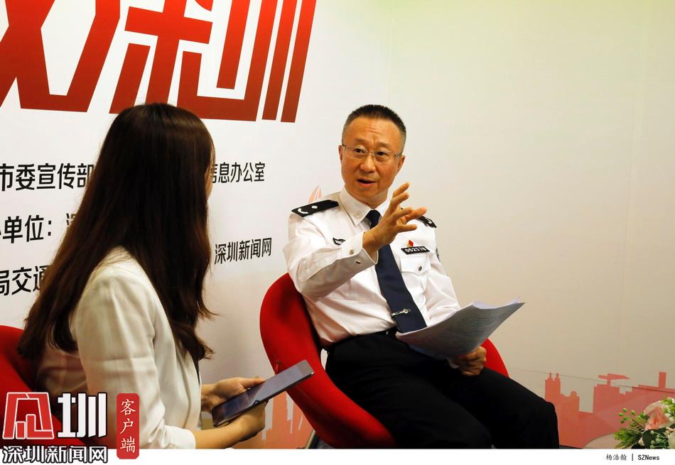 2019年11月15日,福田區(qū),深圳市公安局交通警察局副局長(zhǎng)馮新毅在鏡頭前闡述新交規(guī)內(nèi)容。