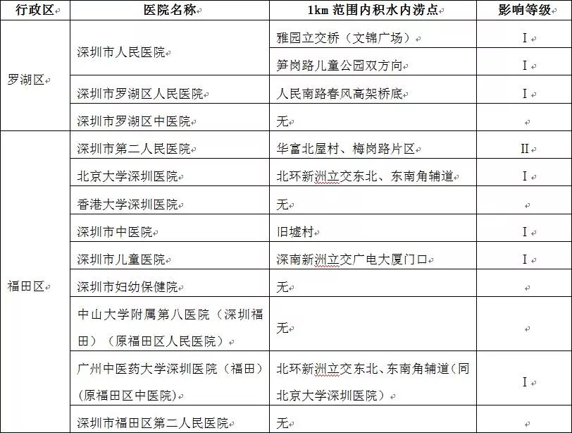 根據(jù)2019年度全市積水內(nèi)澇報(bào)送情況,深圳市水務(wù)局初步梳理出全市49家發(fā)熱門(mén)診(含1家新型冠狀病毒感染肺炎定點(diǎn)救治醫(yī)院)周邊積水內(nèi)澇點(diǎn)29處,并結(jié)合積水內(nèi)澇嚴(yán)重情況分為Ⅰ、Ⅱ、Ⅲ級(jí)。