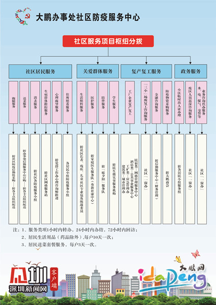 記者看到,在大鵬辦事處防疫服務(wù)中心“防疫服務(wù)項(xiàng)目菜單”上面,分鏈條列出了社區(qū)居民服務(wù)類(lèi)、關(guān)愛(ài)群體服務(wù)類(lèi)、企業(yè)復(fù)工復(fù)產(chǎn)服務(wù)類(lèi)、政務(wù)服務(wù)類(lèi)等四大類(lèi)服務(wù)項(xiàng)目,其中企業(yè)復(fù)工復(fù)產(chǎn)服務(wù)類(lèi)包括工廠企業(yè)復(fù)工復(fù)產(chǎn)、“三小“場(chǎng)所復(fù)工咨詢、金融咨詢、防疫物資采購(gòu)等服務(wù)事項(xiàng)。各社區(qū)防疫服務(wù)中心通過(guò)實(shí)打?qū)嵉姆?wù)措施,助力企業(yè)復(fù)工復(fù)產(chǎn)。
