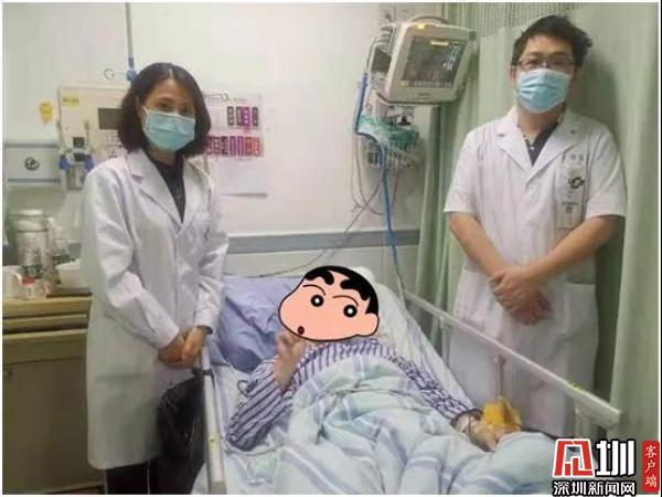 王威回憶:“做了7組心肺復(fù)蘇后,劉先生似乎曾有輕微的反應(yīng)。我后來(lái)也沒(méi)敢松懈,一直堅(jiān)持做到醫(yī)護(hù)人員來(lái)到現(xiàn)場(chǎng)?!?/p> 病情危急 入院搶救后轉(zhuǎn)危為安 16:43分左右,羅湖醫(yī)院急診科醫(yī)護(hù)人員接到120指揮部出車通知后,以最快速度到達(dá)了現(xiàn)場(chǎng),立即開始接手現(xiàn)場(chǎng)救治。當(dāng)時(shí),王威已經(jīng)為劉先生做了7分鐘心肺復(fù)蘇。醫(yī)護(hù)人員迅速評(píng)估劉先生生命體征,發(fā)現(xiàn)他仍無(wú)呼吸、無(wú)心跳,立即繼續(xù)心肺復(fù)蘇并即時(shí)進(jìn)行心電監(jiān)護(hù),建立靜脈通路,開放氣道、球囊輔助通氣并注射腎上腺素。心電監(jiān)護(hù)提示室顫,在除顫2次后,劉先生恢復(fù)了自主呼吸和心跳,被送往羅湖醫(yī)院急診科進(jìn)一步救治。