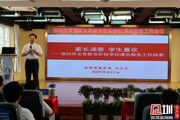 王水發(fā)以“家長滿意,學生喜歡”為主題發(fā)表看法,梳理工作背景,指出發(fā)展課后教育工作的背景和初心——四個有利于:利于解決家長四點半就要接送孩子的困難、有利于利用公共資源,發(fā)展學生的興趣與特長、有利于探索實現(xiàn)學生在學校完成作業(yè)、有利于提高家長教育獲得感。以做好做實為要求,鼓勵羅湖區(qū)辦好這件學校和家長都關(guān)心關(guān)注的工作。