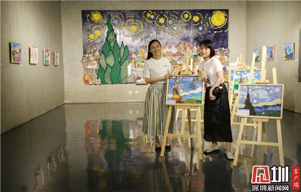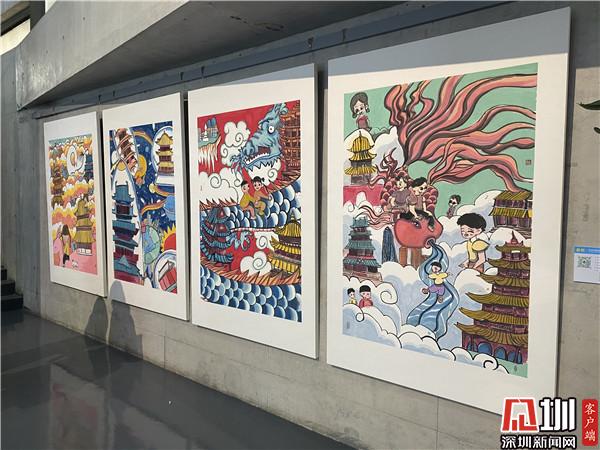 騎著小白兔在天上看四大名樓、把四大名樓帶到宇宙里、在四大名樓上面遇見天空之城……現(xiàn)場,幾幅畫作吸引觀賞者駐留觀看?!皻v代文人墨客用千古名篇頌揚四大名樓,而這個《中國四大名樓》系列作品,孩子們將與深圳共成長的切身感受,與歷史畫卷中的四大名樓發(fā)生靈感碰撞,以簡單的水墨畫表現(xiàn)形式,呈現(xiàn)出不可思議的藝術(shù)效果?!弊髌分笇Ю蠋熡谘┰诓稍L時介紹說道,這一系列的作品,是三四年級的孩子創(chuàng)作,身高沒有很高,但是作品的畫幅很大,而且用的材質(zhì)是宣紙,比較容易破,因此孩子們在繪畫過程中也學會了調(diào)整身體的位置和紙張比例,以及更加小心翼翼地保護自己的畫作,這也是他們創(chuàng)作中有趣的過程。