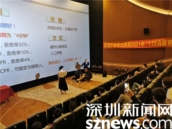 羅湖區(qū)委宣傳部常務(wù)副部長章紅班對轄區(qū)行業(yè)“消防宣傳月”進(jìn)行部署和要求。隨后,安全專家講師羅靈在現(xiàn)場進(jìn)行了安全知識培訓(xùn)和心肺復(fù)蘇救助技能培訓(xùn)。