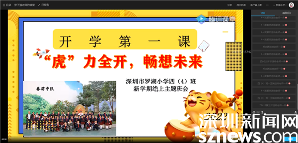 在升旗儀式后,同學們在線上觀看了奮戰(zhàn)在抗疫一線的老師的工作視頻。隨后,4至6年級的主題班會紛紛開始,圍繞“冬奧會”“學雷鋒”等內容在線上課堂展開熱烈討論。