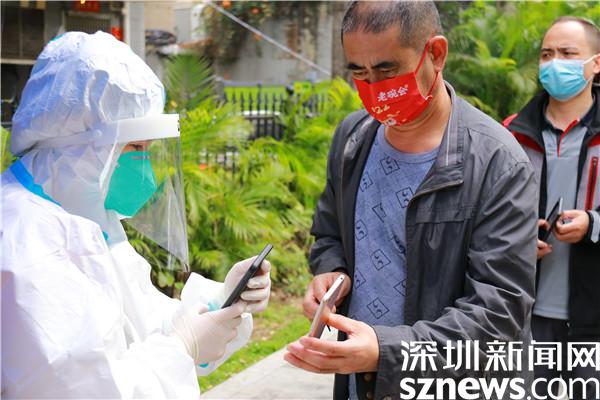 從2月17日開始,劉曉勇加入安保公司,被派到羅湖區(qū)東曉街道支援疫情防控工作,至今已有13天,13天里,他跟隨隊伍轉(zhuǎn)遍了東曉街道各個核酸檢測點,從分流人群、維持秩序,到掃碼、引導居民操作、核酸檢測點布置、采樣結束收尾……對每個流程都了如指掌;13天里,他每天工作十幾個小時,從早上九點到晚上十點、十一點,只在中午輪班吃飯的時候有十幾分鐘休息時間。