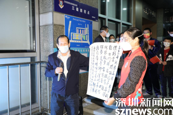 “親愛的孩子們,這么多天來,你們悄悄地來,輕輕地去,我雖看不清你們的容顏,但能感受到你們溫暖的心。你們的辛苦換來了我們的安寧,阿姨感謝你們也心疼你們?!边@是來自桂園街道華瑞大廈B座居民的手寫感謝信,一句“親愛的孩子們”戳中了現(xiàn)場工作人員的心,讓人忍不住淚目。