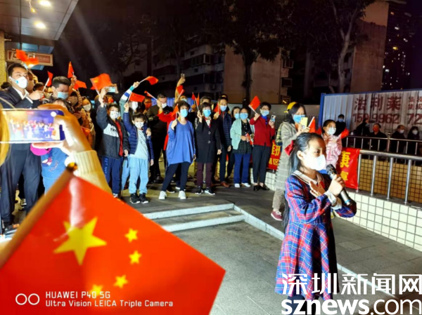 夜色中,居民們紛紛下樓,享受著解封后的喜悅心情。解封當晚,桂園街道還為居民群眾準備了祝??ê蛺坌男《Y包,感謝他們對街道疫情防控工作的支持和理解。