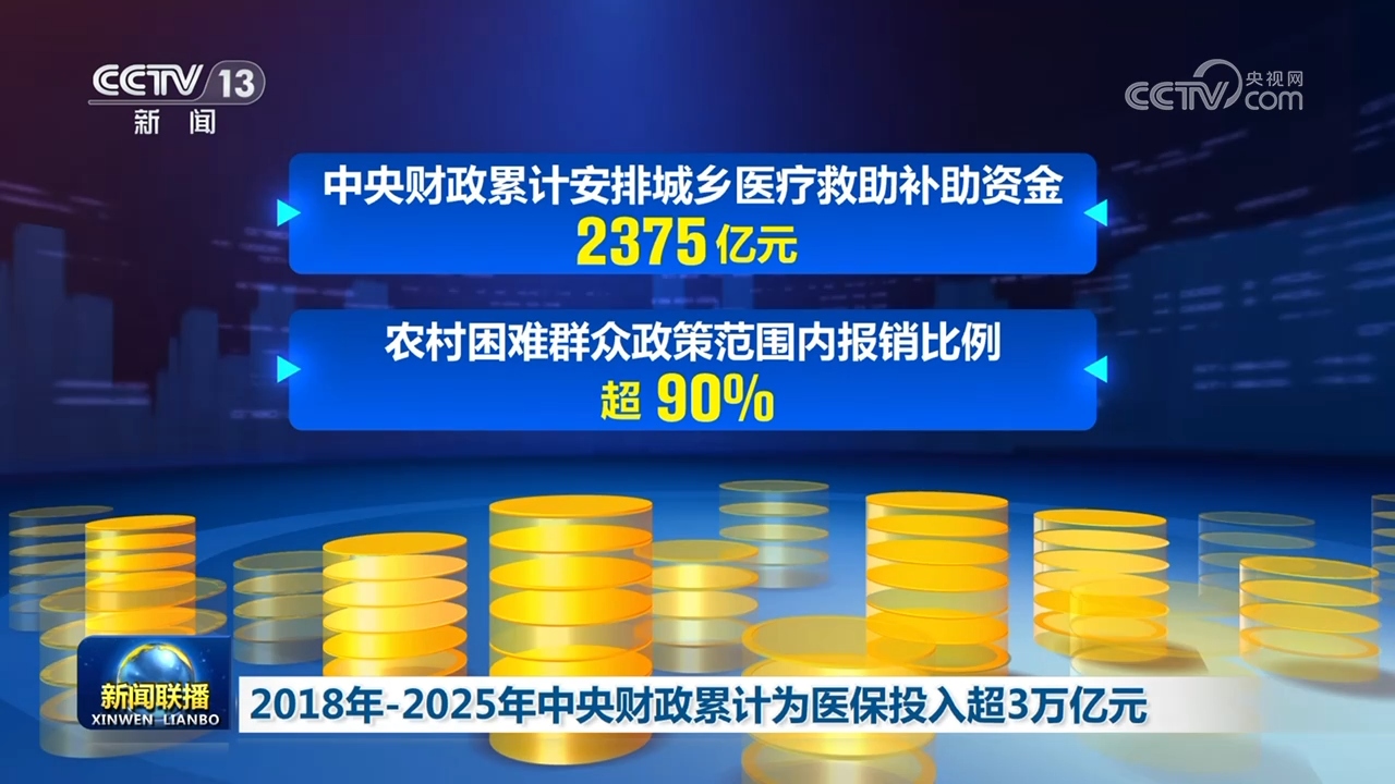 中央財政累計安排城鄉(xiāng)醫(yī)療救助補助資金2375億元,農村困難群眾政策范圍內報銷比例超90%。