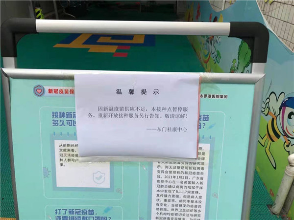 4月6日,記者在羅湖區(qū)東門社康中心看到,該社康貼出了疫苗暫時(shí)供應(yīng)不足的告知。記者隨后走訪了其他幾個(gè)接種點(diǎn),一些社康也紛紛貼出了類似溫馨提示。記者了解到,除羅湖外,其他區(qū)的接種點(diǎn)也出現(xiàn)了類似“缺苗”現(xiàn)象。對此,記者采訪了羅湖區(qū)衛(wèi)健局,相關(guān)負(fù)責(zé)人表示,這段時(shí)間轄區(qū)新冠病毒疫苗接種率大幅提升,目前缺苗只是暫時(shí)性的,正在加強(qiáng)調(diào)配,隨時(shí)可能到苗,請大家耐心等待,同時(shí)留意相關(guān)提示。