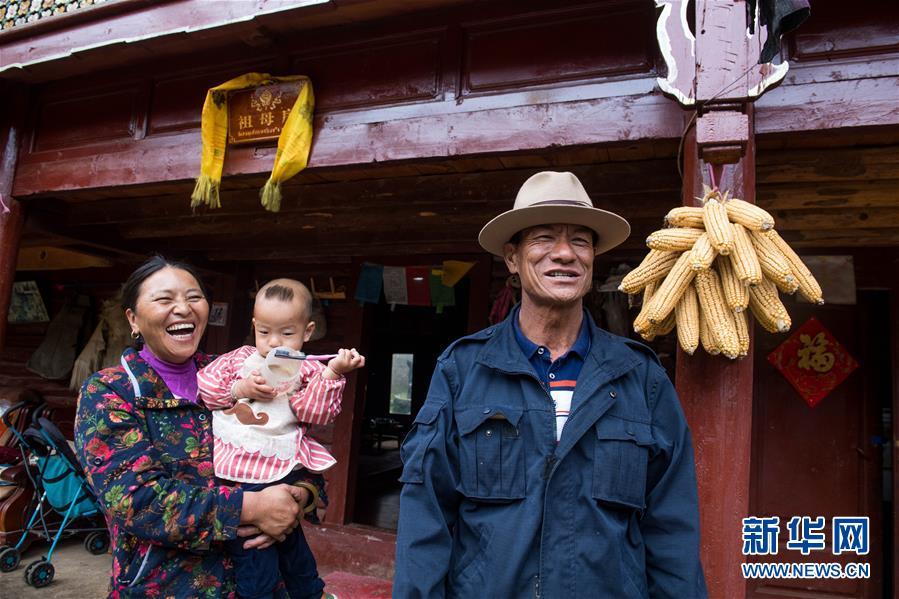 寧蒗永寧鄉(xiāng)泥鰍溝村委會八珠村民小組的摩梭人阿普私根(右)站在自家門口(7月30日攝)。他家是摩梭母系家庭重點保護民居,依靠旅游服務等家庭年收入近20萬元。新華社記者 胡超 攝