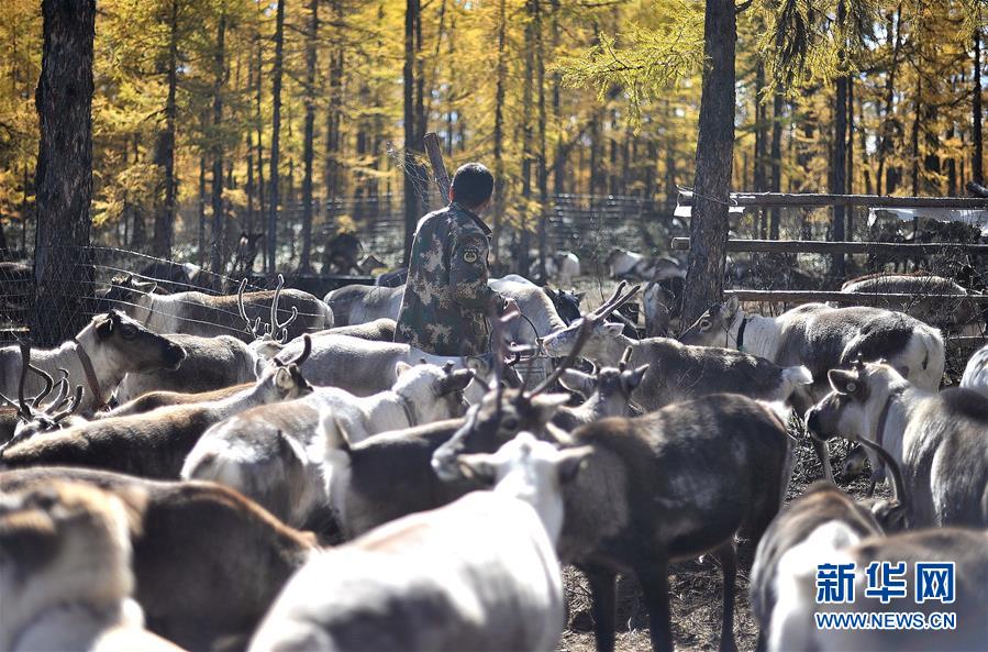 9月18日,在內蒙古大興安嶺根河林業(yè)局約安里林場,林場職工為馴鹿養(yǎng)殖基地運送給養(yǎng)。新華社記者于洋攝