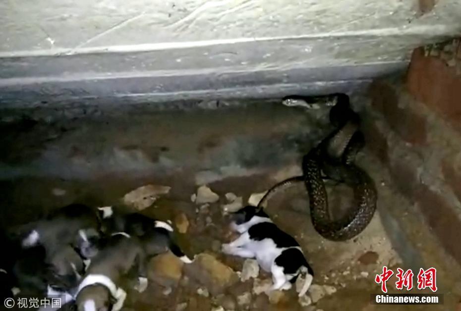 9月20日訊(具體拍攝時(shí)間不詳),印度奧里薩邦,一只寵物狗勇敢地挽救了新生幼犬的生命,它擊退了一條可怕的眼鏡蛇。面對(duì)一條巨大的斑點(diǎn)眼鏡蛇——世界上最毒的蛇之一——這位新媽媽勇敢保護(hù)僅出生兩天的幼崽。但不幸的是,盡管狗狗盡了最大的努力,蛇還是在救援人員救出幼犬之前仍殺死了4只小狗。圖片來源:視覺中國(guó)