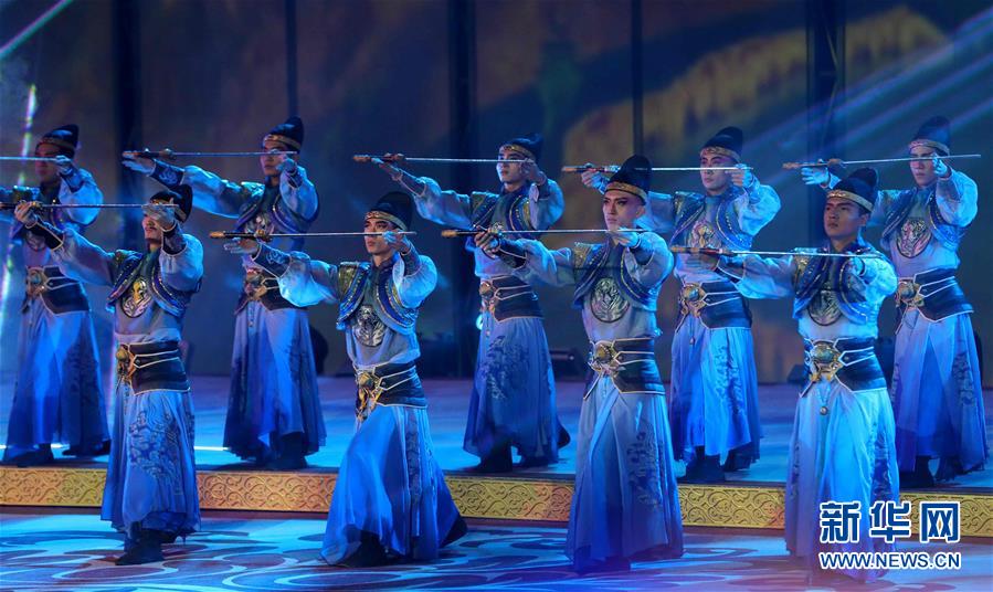 演員在表演《夢長安——大唐迎賓盛禮》(9月23日攝)。  新華社記者 梁愛平 攝