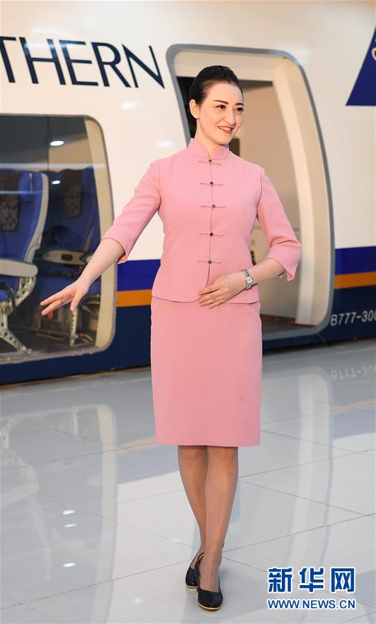 9月26日,中國(guó)南方航空公眾開放日活動(dòng)上,空乘展示制服。 新華社記者 鄧華攝