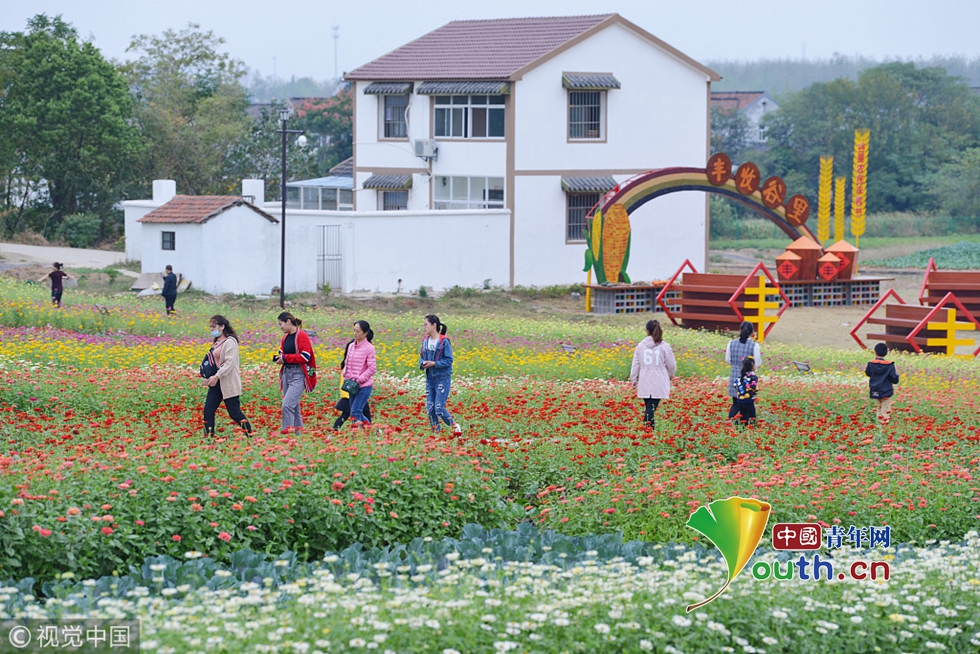 南京50萬株百日菊齊綻放 宛如彩虹落在田野中