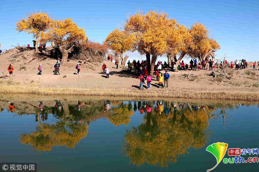 中國青年網(wǎng)北京10月9日電 2018年10月7日至8日,內(nèi)蒙古自治區(qū)阿拉善盟額濟(jì)納旗,地處巴丹吉林沙漠。額濟(jì)納河兩岸壯觀的胡楊林堪稱大漠的一顆綠色明珠,每年深秋時節(jié)的第一場秋霜過后,大片的胡楊樹葉由綠變黃,一眼望去,陽光下金色的樹葉襯著湛藍(lán)的天空于風(fēng)中婆娑起舞,鮮明的影調(diào),亮麗的色彩,令人流連忘返。