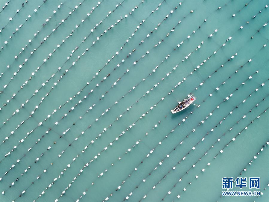 8月18日,南麂島馬祖岙海灣內(nèi),養(yǎng)殖戶乘船在貽貝養(yǎng)殖區(qū)內(nèi)作業(yè)(無人機拍攝)。進入8月,浙江省溫州市平陽縣南麂鎮(zhèn)海域上大片的大黃魚、貽貝等特色海產(chǎn)品養(yǎng)殖區(qū)域迎來豐收季節(jié),養(yǎng)殖戶們駕駛漁船在養(yǎng)殖區(qū)海域進行打撈收獲,在碧海藍天下構(gòu)成了一幅“海上牧場”的美麗豐收景象。近年來,南麂鎮(zhèn)政府引導漁民養(yǎng)殖戶充分發(fā)揮“靠海吃?!钡馁Y源優(yōu)勢,大力發(fā)展海洋養(yǎng)殖經(jīng)濟和海島旅游經(jīng)濟,實現(xiàn)了南麂由“生態(tài)美”向“產(chǎn)業(yè)美”,“產(chǎn)業(yè)美”向“經(jīng)濟美”的轉(zhuǎn)變。同時該鎮(zhèn)堅持以大黃魚、貽貝等為特色產(chǎn)業(yè)支撐,精準發(fā)展高效海洋養(yǎng)殖業(yè),重點培養(yǎng)一批新型職業(yè)漁民,依靠專業(yè)技術(shù)支持,實現(xiàn)深海仿生養(yǎng)殖,讓好生態(tài)造就好品質(zhì),重點打造南麂養(yǎng)殖品牌,組建營銷網(wǎng)絡(luò),拓展特色海產(chǎn)品市場。新華社記者 徐昱攝