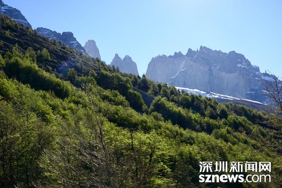 百內國家公園內的三塔峰是智利乃至南美洲久負盛名的徒步旅游景點。三座塔峰兀然聳立,海拔高度都在2200米以上,方圓幾十公里之外都能看到它們的倩影。這個景點對全球戶外旅游愛好者有著非凡的魅力。徒步愛好者歷經10小時征服三塔峰,拍下沿途美景。李仁奇 攝