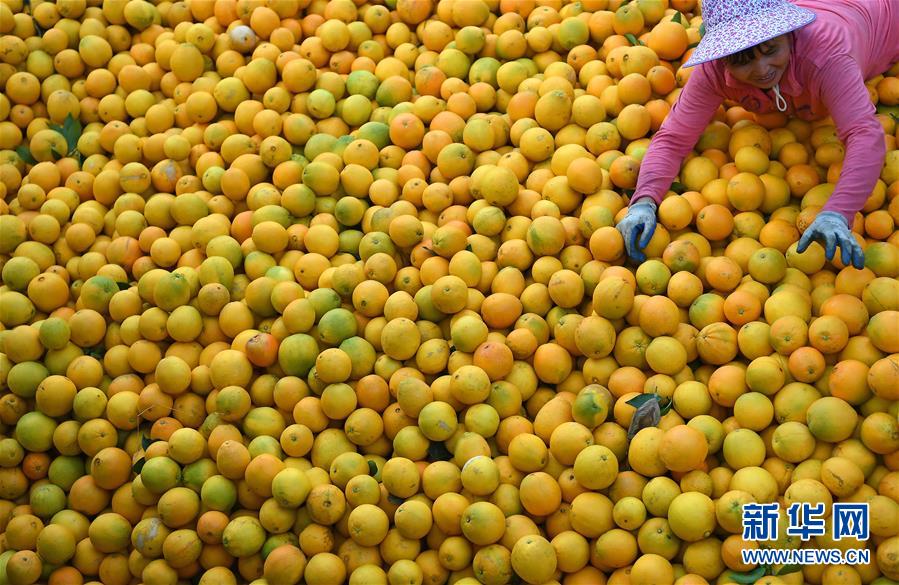 近日,江西省贛州市尋烏縣近20萬(wàn)畝果園進(jìn)入豐收采摘期,當(dāng)?shù)毓r(nóng)抓住晴好天氣開(kāi)始采摘臍橙,果園一派繁忙景象。新華社記者 萬(wàn)象 攝