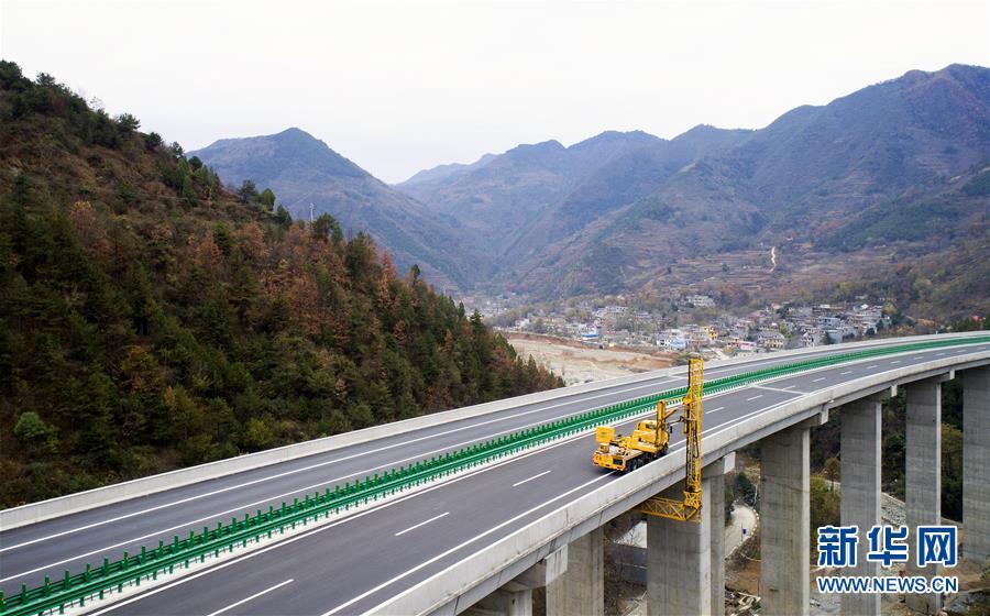 11月20日,在水陽高速公路左家灣特大橋上,橋梁檢測車在進行通車前的檢測作業(yè)(無人機拍攝)。 近日,記者從陜西省交通建設集團公司了解到,陜西柞水至山陽高速公路已全線貫通即將通車。據(jù)介紹,(柞)水(山)陽高速公路全長78.8公里,開通后將實現(xiàn)包茂高速、福銀高速在陜南商洛地區(qū)的連接,開辟出秦嶺南麓的一條橫向高速大通道,對完善陜西高速公路路網(wǎng)結(jié)構(gòu)、促進陜南區(qū)域經(jīng)濟發(fā)展、加快山區(qū)群眾脫貧致富具有重要意義。 新華社記者劉瀟攝