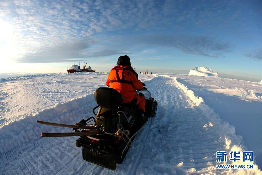 冰上運(yùn)輸之路最后一公里修通,修路小組成員返回“雪龍”號(12月1日攝)。 搭載中國第35次南極科考隊(duì)的“雪龍”號極地考察船日前到達(dá)距離中山站44公里處的陸緣冰區(qū),準(zhǔn)備迎來本次南極科考首場攻堅(jiān)戰(zhàn)——物資卸運(yùn)。一支探冰小組隨即展開海冰探路,以期盡快打通從“雪龍”號到中山站的冰上運(yùn)輸線,盡早啟動冰上運(yùn)貨。 新華社記者 劉詩平 攝