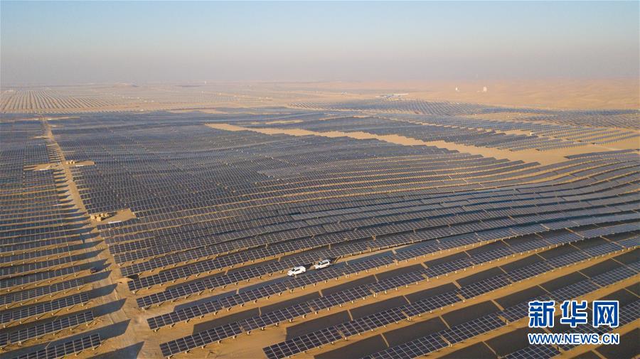 位于庫布其沙漠腹地的達拉特光伏發(fā)電應用領跑基地一期500兆瓦項目(12月13日無人機拍攝)。 新華社記者 彭源攝