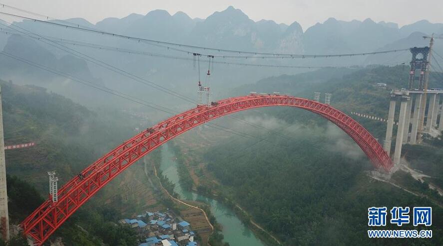 在重慶涪陵拍攝的渝懷鐵路涪秀二線重點(diǎn)工程——烏江右線大橋(10月23日無(wú)人機(jī)拍攝)。10月23日,由中鐵四局承建的渝懷鐵路涪秀二線重點(diǎn)工程——烏江右線大橋主跨成功合龍,標(biāo)志著大橋主體工程全部順利結(jié)束。烏江右線大橋項(xiàng)目全程460.1米,主跨192米,跨越烏江和319國(guó)道。在兩年多的建設(shè)過(guò)程中,施工人員攻克了“不等高墩”“不對(duì)稱(chēng)邊跨”“邊跨入隧”等多個(gè)技術(shù)難題。新華社記者王全超攝